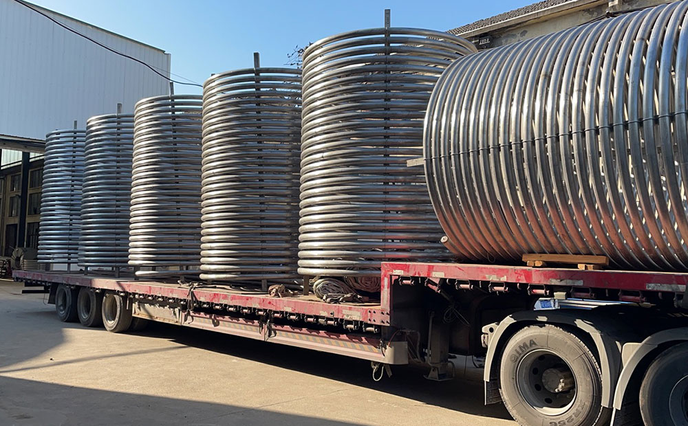 盘管的冷却方法主要有真空法,内压法以及定型口定径等。